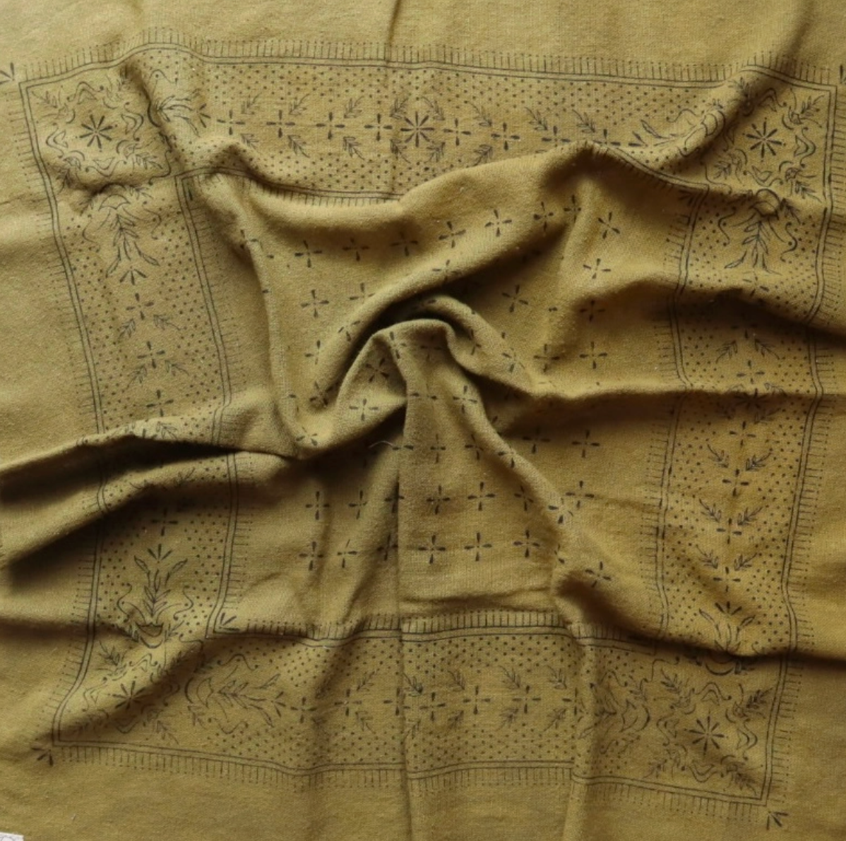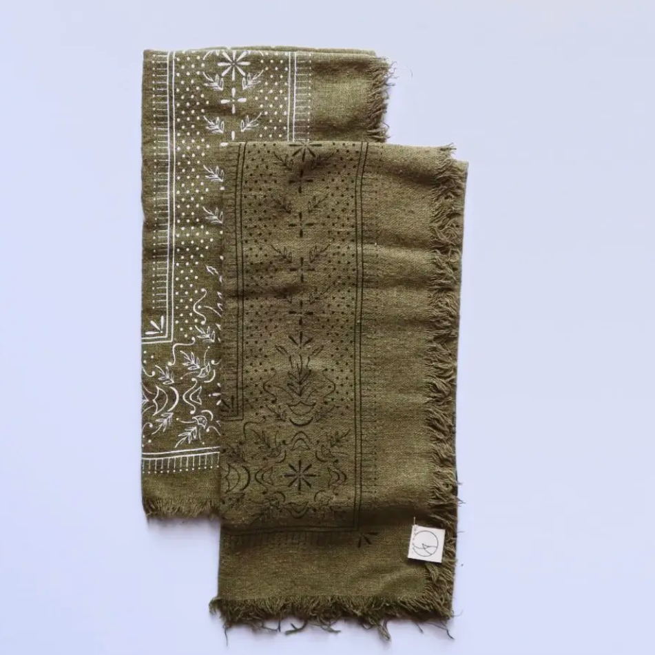 Each item is hand cut, sewn, dyed, and printed in Cincinnati Ohio. Due to the nature of natural dyed colors due fade over time and are effected by harsh chemicals and soaps. We recommend hand washing and line dry with a natural PH neutral soap. Each batch may vary slightly in color we see this as one of the beauties of natural dyes.