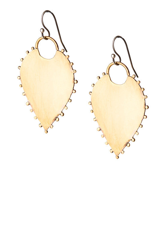 35mm bronze lotus earring with ball detail on oxidized sterling silver earwires that hang at 2" long.